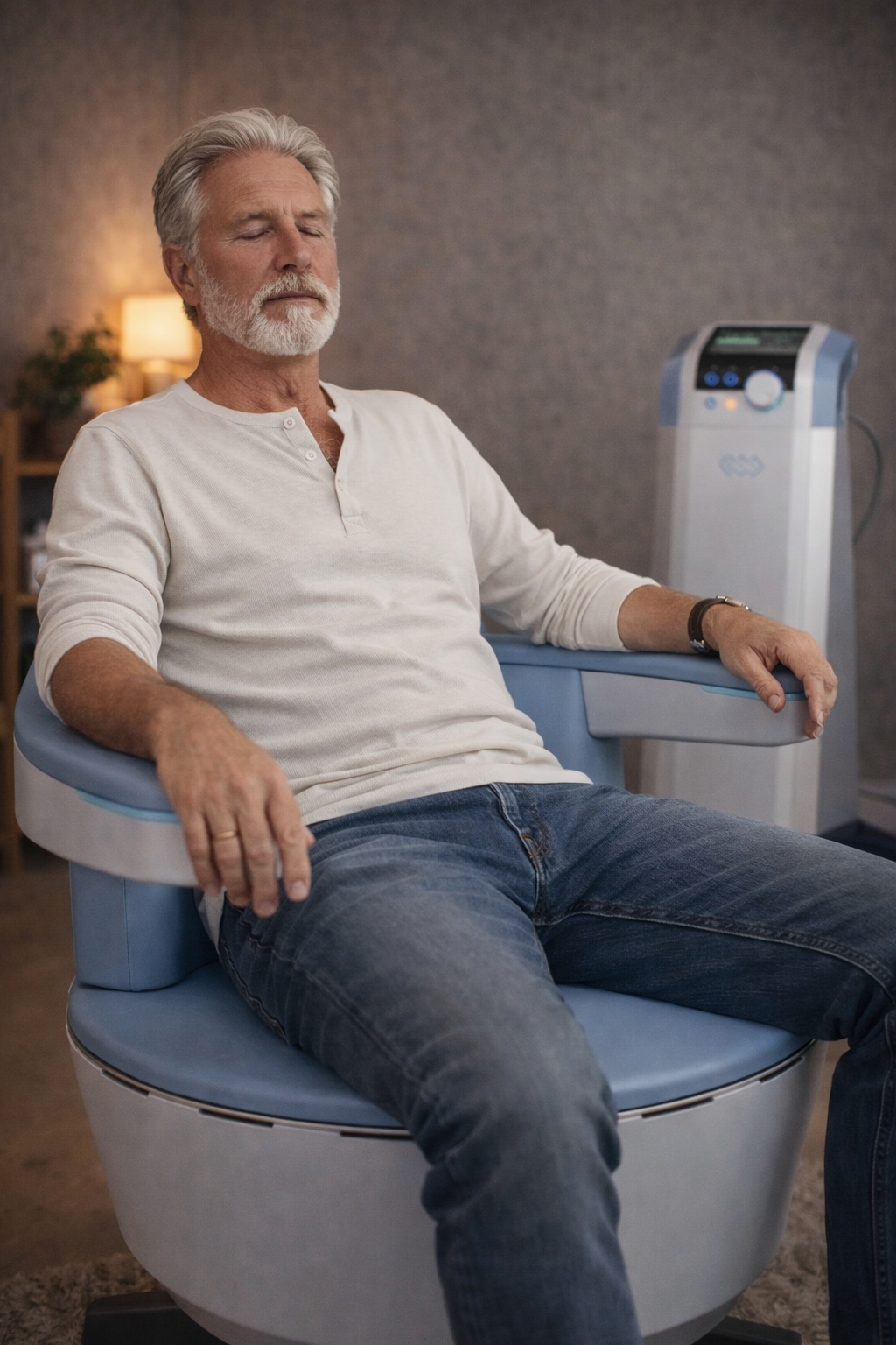 You remain fully clothed and simply sit in the chair while the technology activates and retrains the muscles that support bladder control and sexual function.